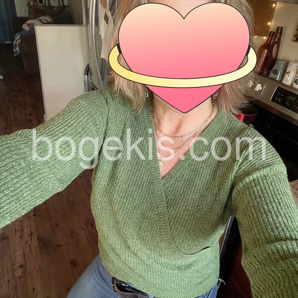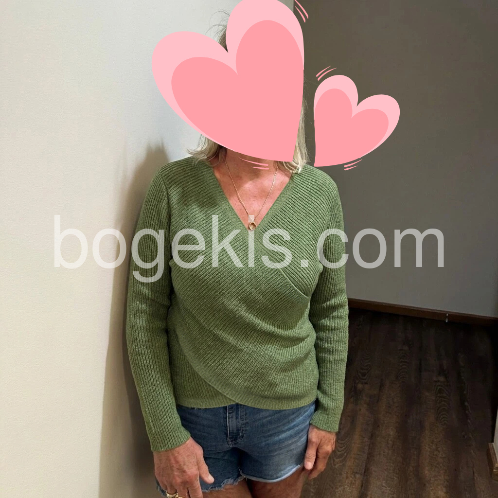 I absolutely love this sweater! The color is such a beautiful, easy-to-wear olive green. The V-neck crossover design is very flattering and makes the whole look more polished. The knit feels soft and not itchy, and it’s comfortable while still being warm. The fit looks great and matches the photos well. Overall, the quality feels really nice.