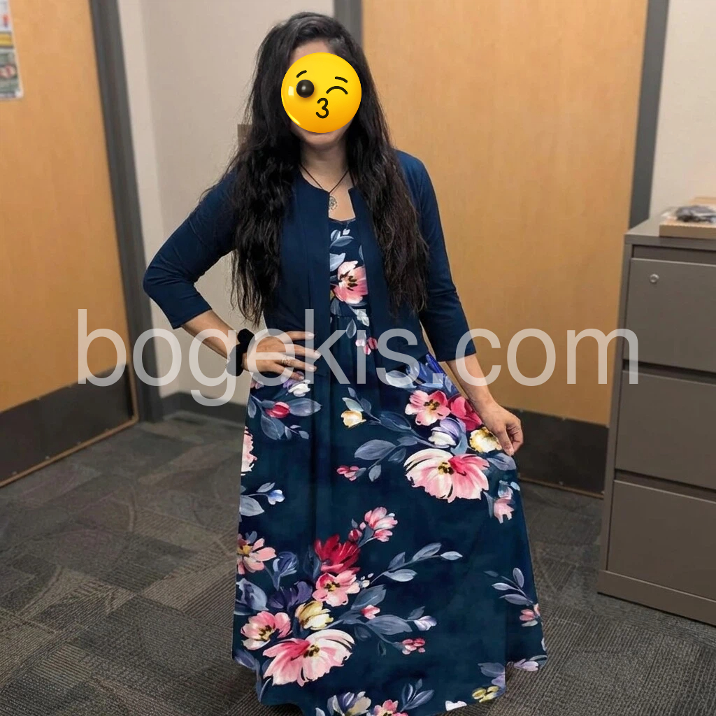 I’m absolutely in love with this dress. So elegant and flattering. The navy base with the vibrant floral print looks rich and eye-catching, and the fit feels just right for everyday wear.