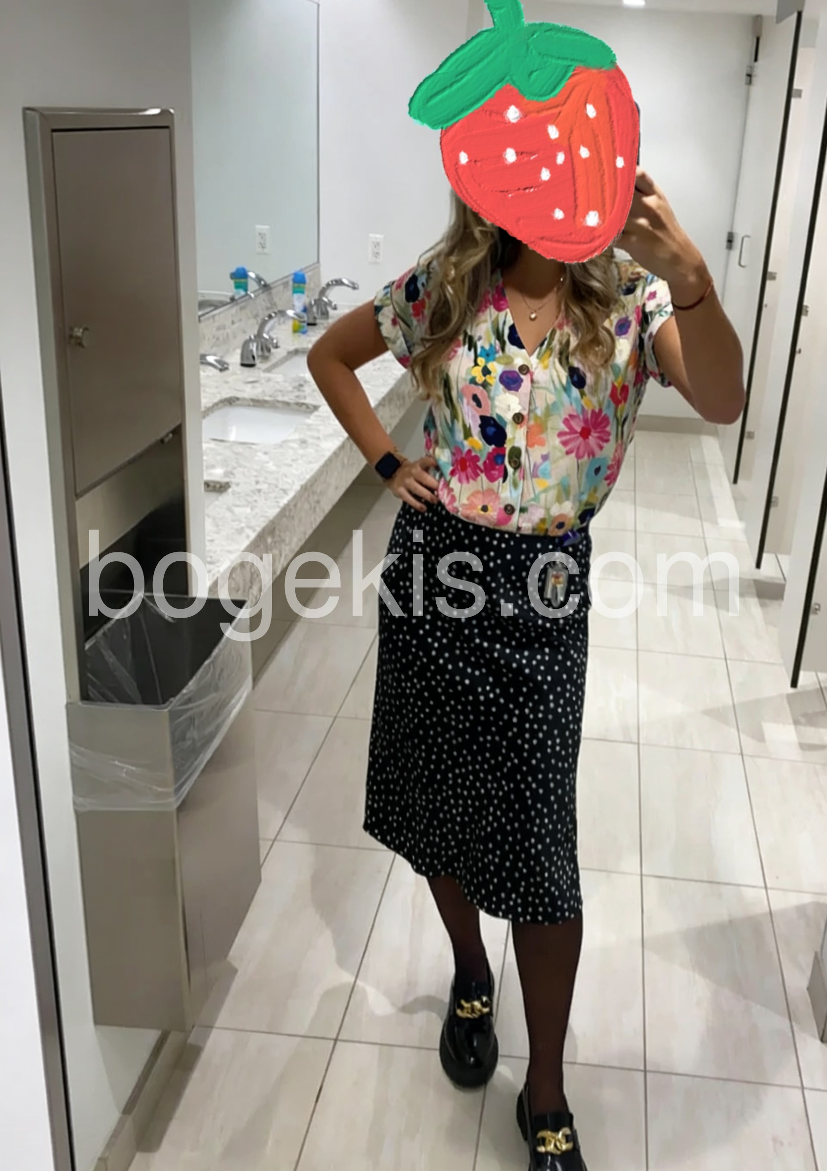 This button-down floral shirt is absolutely gorgeous. The buttons down the front give it a trendy vibe, and the fit is relaxed but still gives you a shape. I usually wear a medium and the medium fit perfectly.