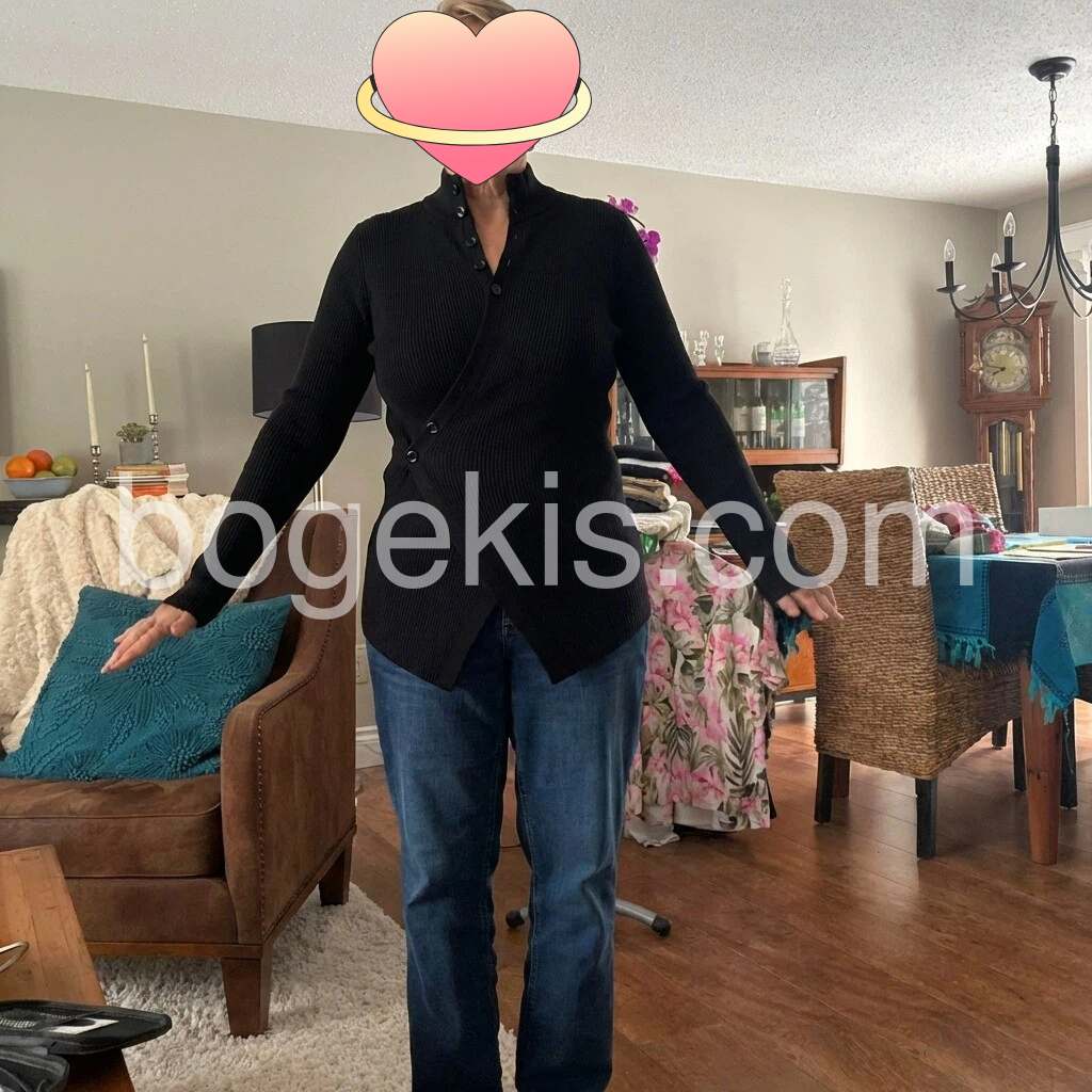 I’m really pleased with this piece. The black color is classic, and the ribbed texture looks high quality. The button-front detail is flattering, and the fit is comfortable through the shoulders and arms. It feels soft and easy to wear, and it layers well over other tops. Overall, it matches the photos nicely and I’ve already gotten a lot of compliments—great purchase.