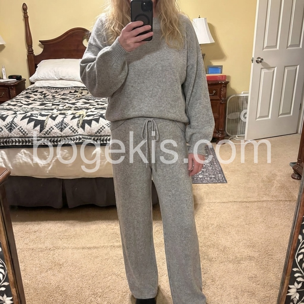 This set is super soft, comfortable and pretty. I love how it moves with you and is cozy and warm. The length of the pants is very nice. I’m 5’9” and pants are often too short on me. This was perfect. I will wear this out and about. Would also be great for travel being so stretchy and comfy. Highly recommend!