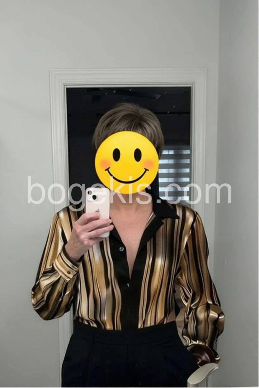 I am absolutely loving this striped blouse! 😍 The fit is fantastic, and the fabric feels so luxurious against my skin. It looks incredibly chic! ✨ Definitely a new favorite in my wardrobe. Highly recommend! 👍\"