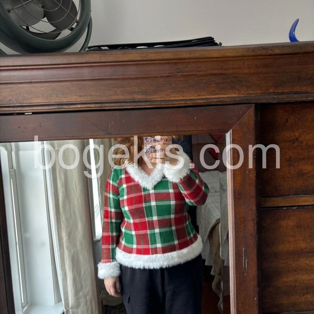 This plaid top is the ultimate Christmas staple! The classic red and green pattern is so timeless, and the fur trim gives it a playful, festive vibe. The fabric is soft and comfortable, and the fit is true to size. It’s perfect for sweater parties, Christmas markets, or just lounging at home. I’ve gotten so many questions about where I got it!