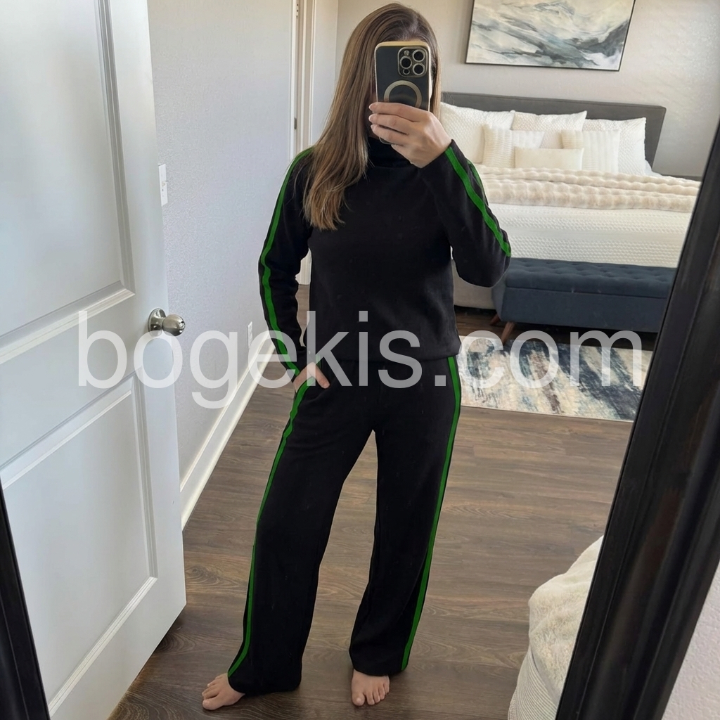 I really like this set. It’s super comfy and very nice quality. It has some good weight to it, the fabric is thick enough. It’s versatile and can be worn as pjs or used for a casual outing. It’s stretchy. The waste was a tiny bit snug and the pants are long for sure, but I’m happy with this purchase overall.