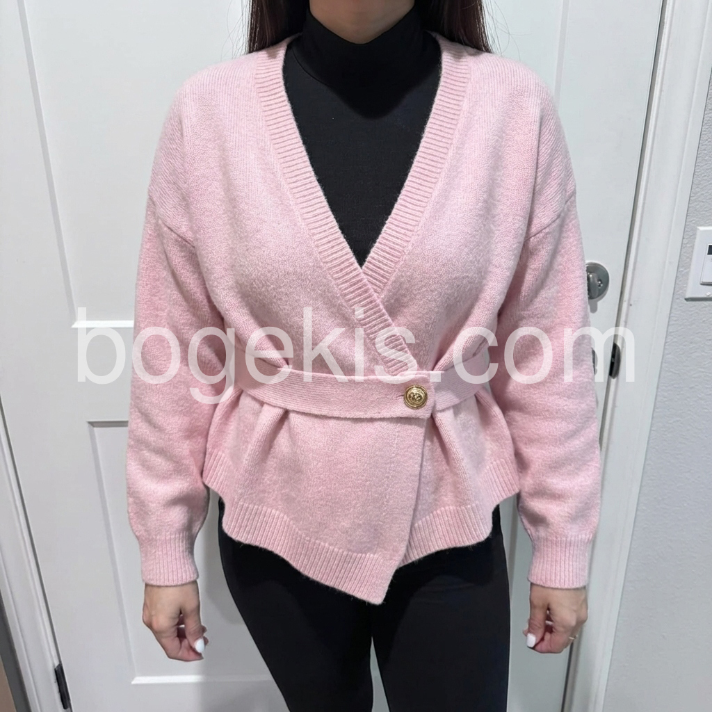 This cardigan is made with high-quality material and features a sweet pink color, long sleeves, and a plain design. Perfect for any occasion, it provides comfort and style. Made to last, this cardigan is sure to become a staple in your wardrobe.