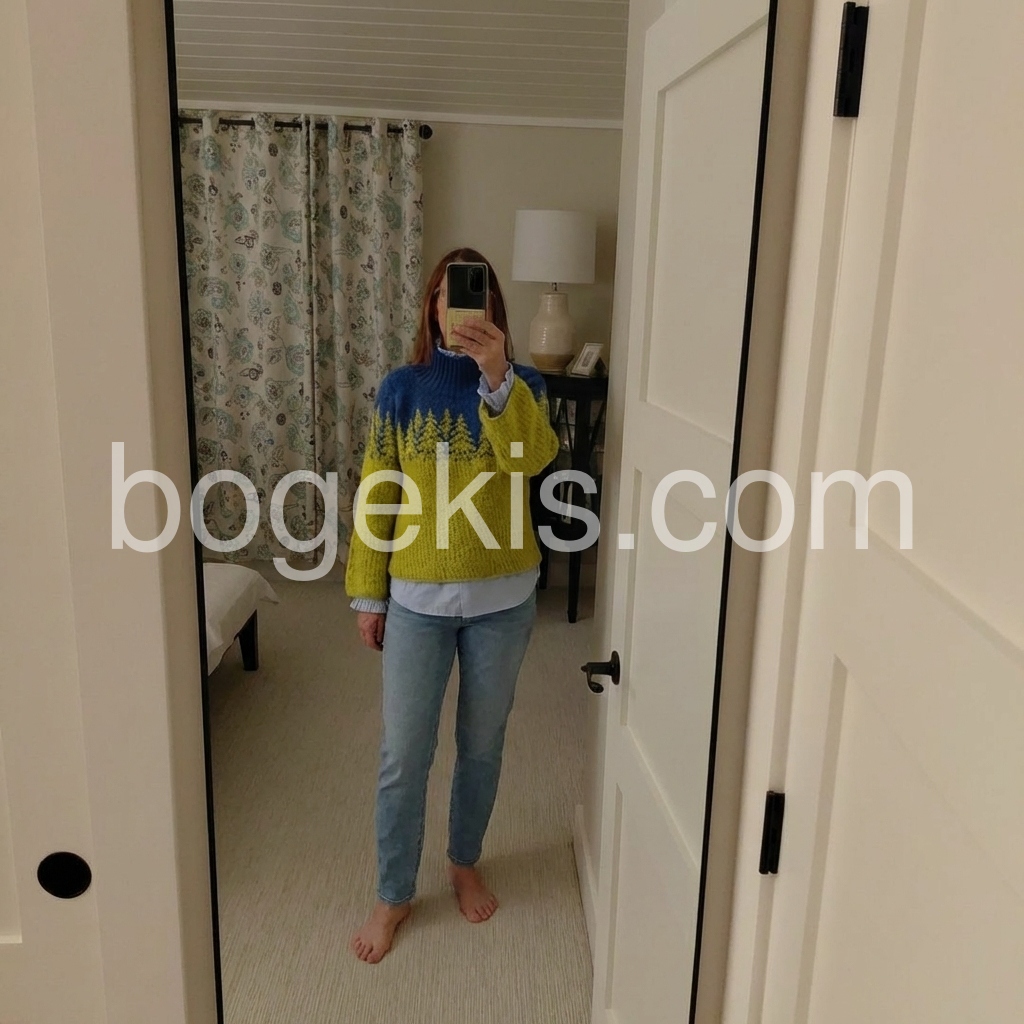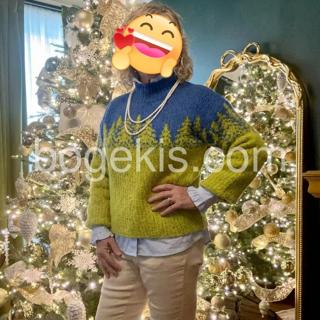 Great purchase! This sweater is incredibly soft and warm, perfect for cold weather. The design is so cute—those little trees are such a sweet detail, and the color contrast is bold but stylish. The bell sleeves are a nice touch, adding a feminine flair without being too frilly. It fits well, not too tight or too baggy, and the high neck is great for blocking out the wind. I’ll definitely be buying more colors if they become available!