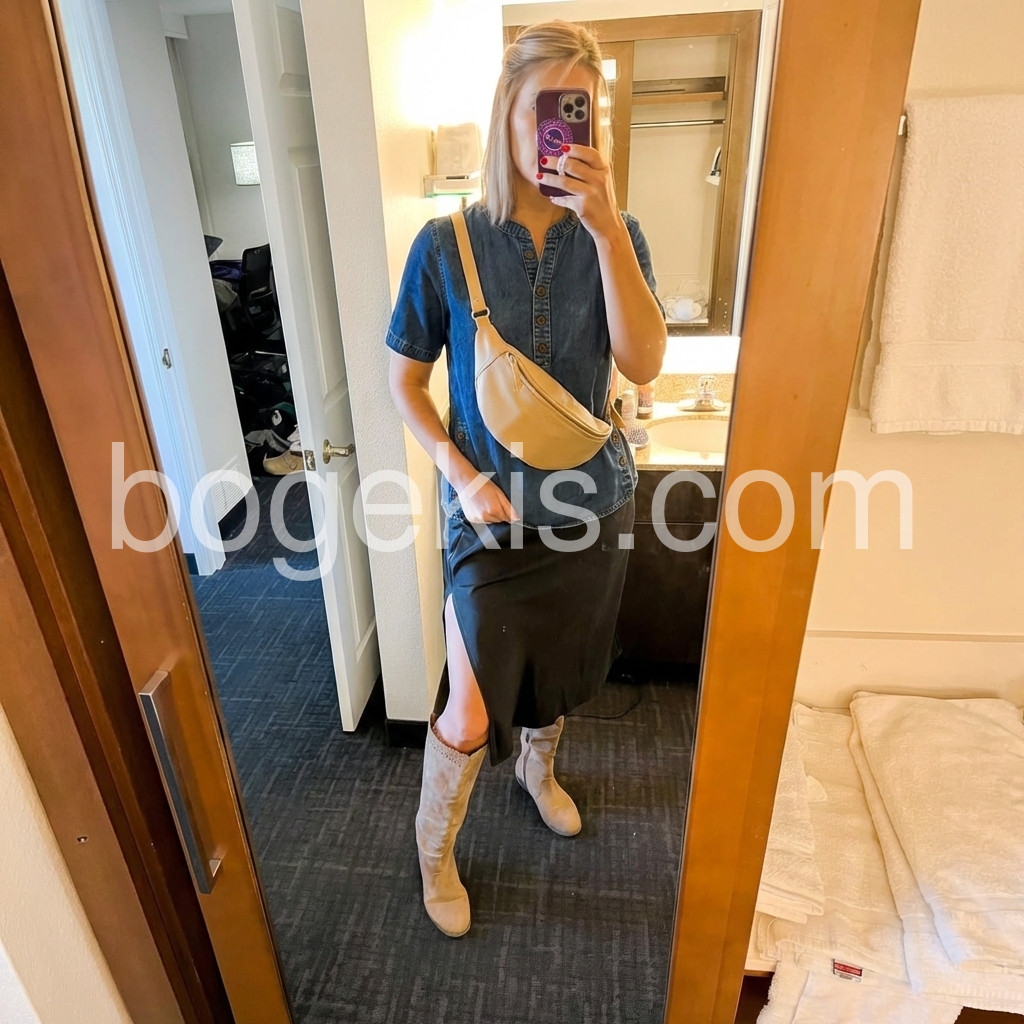 This is my new favorite weekend shirt. It is so easy to throw on and instantly look put together. It did not wrinkle much in my suitcase either, which makes it perfect for travel. The faux denim style is very trendy right now.