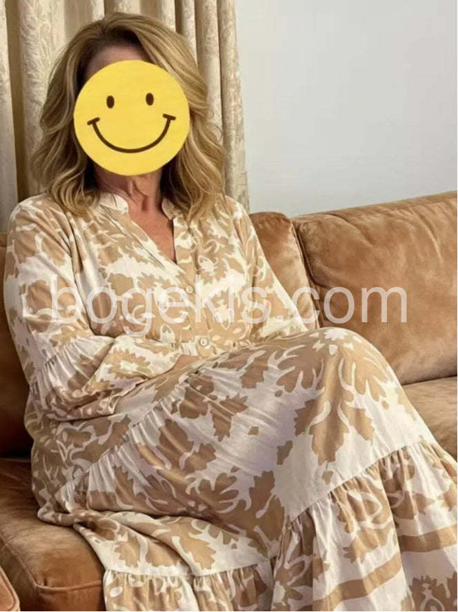 So stunning and elegant yet comfortable enough to wear all day. The neutral beige floral print is really pretty in person. Great quality for the price.