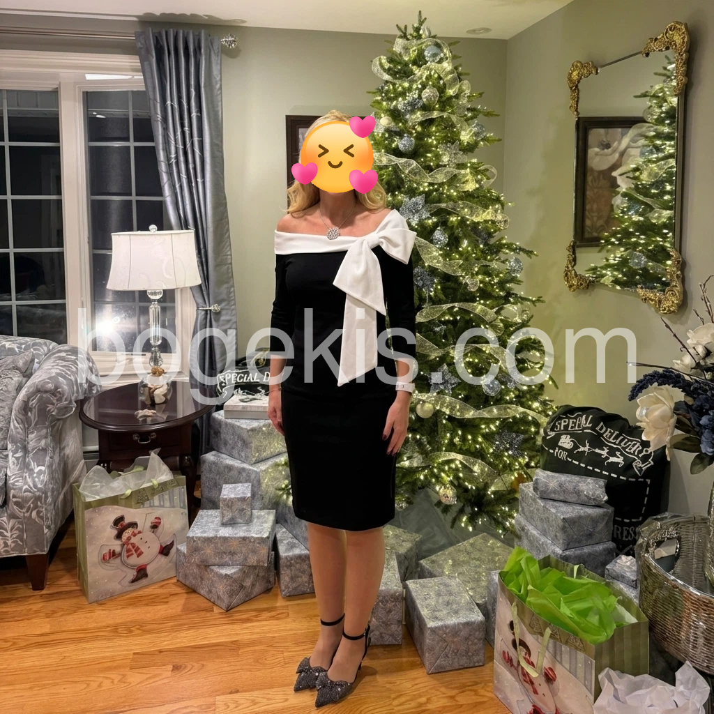 I absolutely adore this off-shoulder top! The black and white contrast is so chic, and the large bow adds a playful yet elegant touch. The fabric is soft and comfortable, perfect for both casual outings and dressier occasions. It fits true to size and the 3/4 sleeves are ideal for transitional weather. Highly recommend!