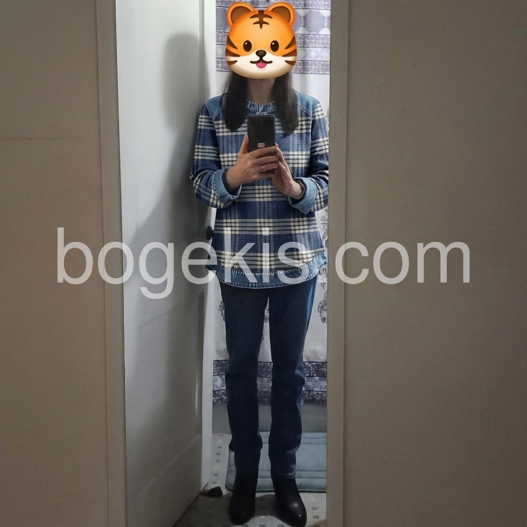 Groovy Denim Check Patchwork Long Sleeve Top