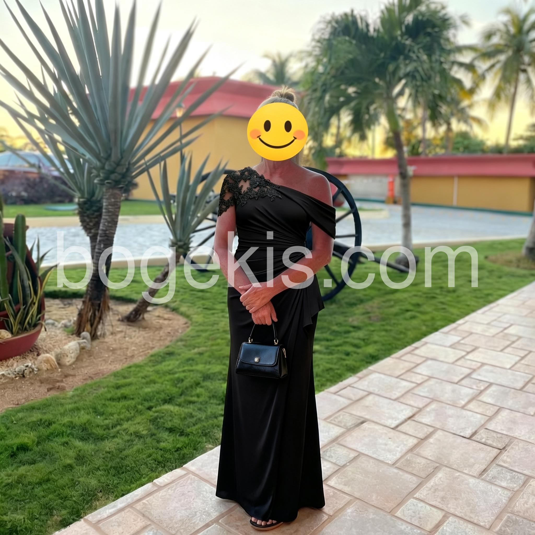 I cannot say enough good things about this dress. It is classic, elegant, and timeless. The one-shoulder detail with the floral lace pattern makes it stand out from a basic black maxi. So glad I purchased this.