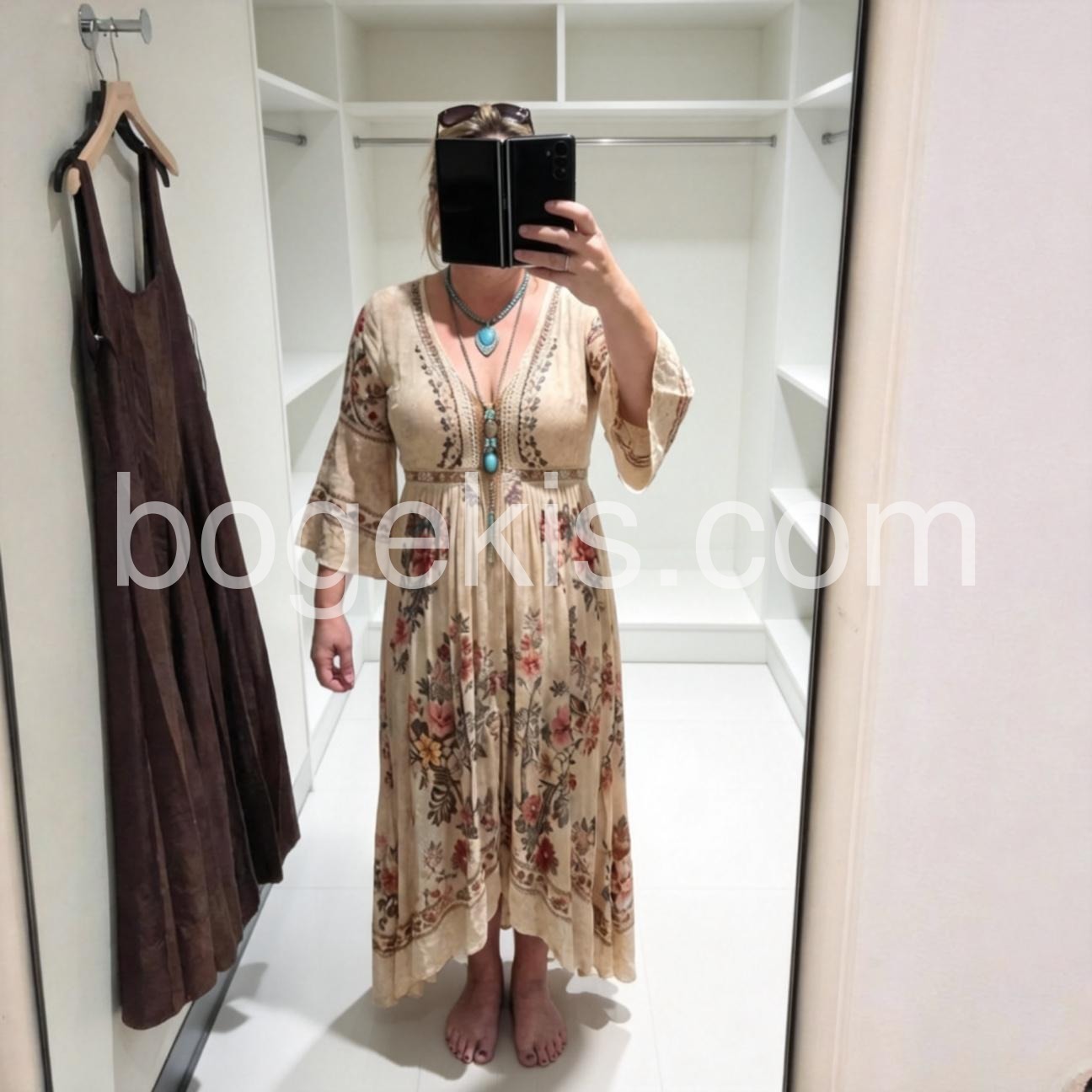 Absolutely in love with this boho dress! The floral print is delicate and vibrant, and the lightweight fabric drapes beautifully. I will pair it with brown boots and a wide-brim hat for an effortless desert chic look.