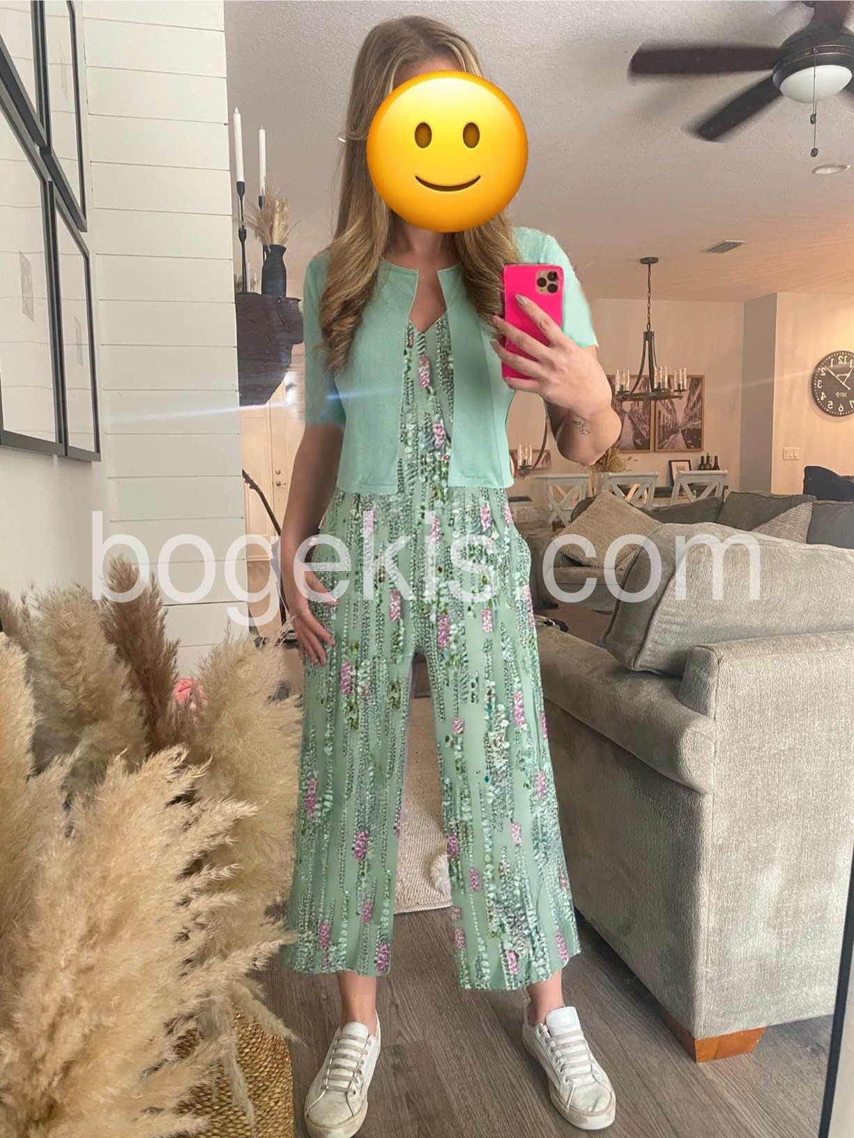 Discover the perfect combination of style and comfort with our Youthful V-Neck Green Jumpsuit with Jacket. Featuring a flattering v-neckline and a vibrant green color, this jumpsuit is perfect for any occasion. The included jacket adds versatility and warmth, making it a must-have for your wardrobe. Made with high-quality materials, you'll feel both confident and comfortable wearing this stylish outfit.