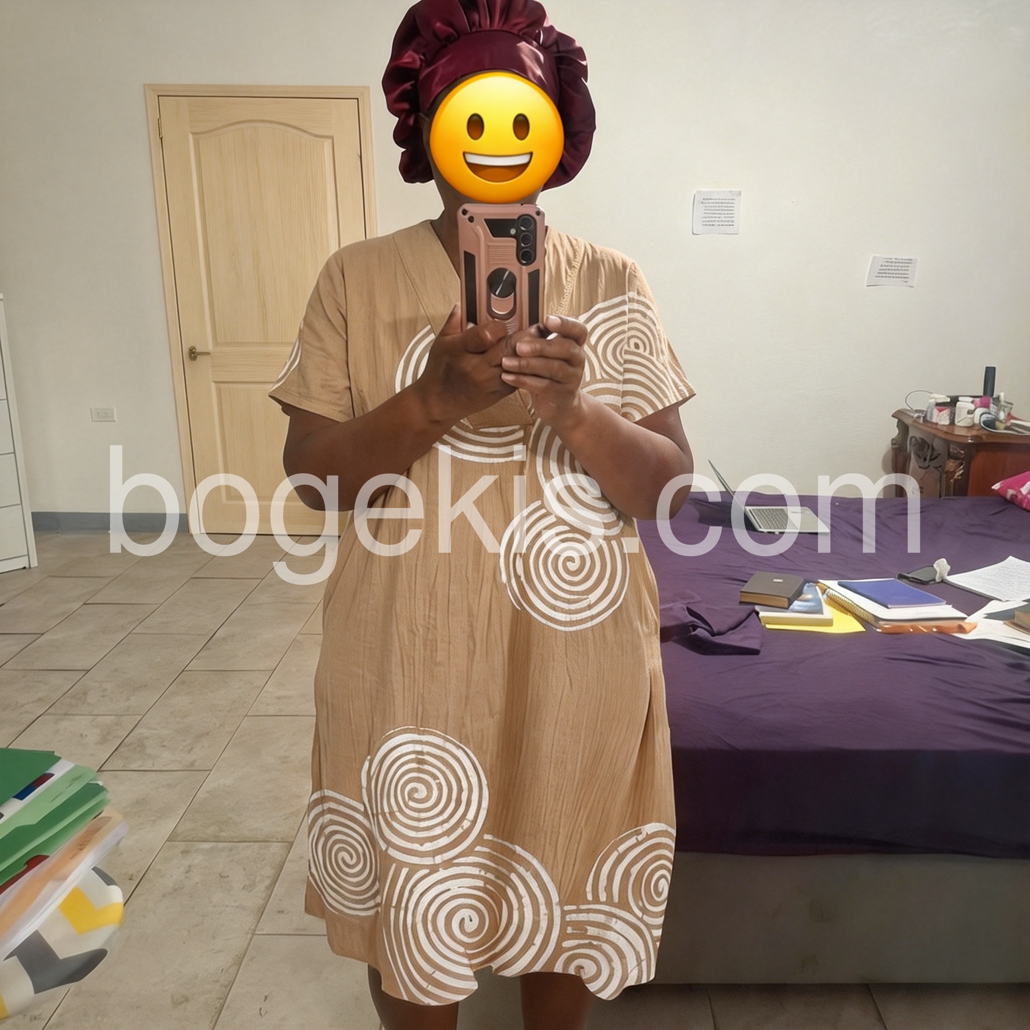 This midi dress combines contemporary design with timeless appeal. The rich brown hue provides versatility for various occasions, while the eye-catching spiral print adds visual interest and movement. Cut with short sleeves for warm-weather comfort, the midi length offers a sophisticated silhouette that flatters multiple body types. The structured fabric maintains its shape throughout the day, making it equally suitable for casual outings or elevated gatherings. A wardrobe essential that transitions seamlessly from day to evening wear.