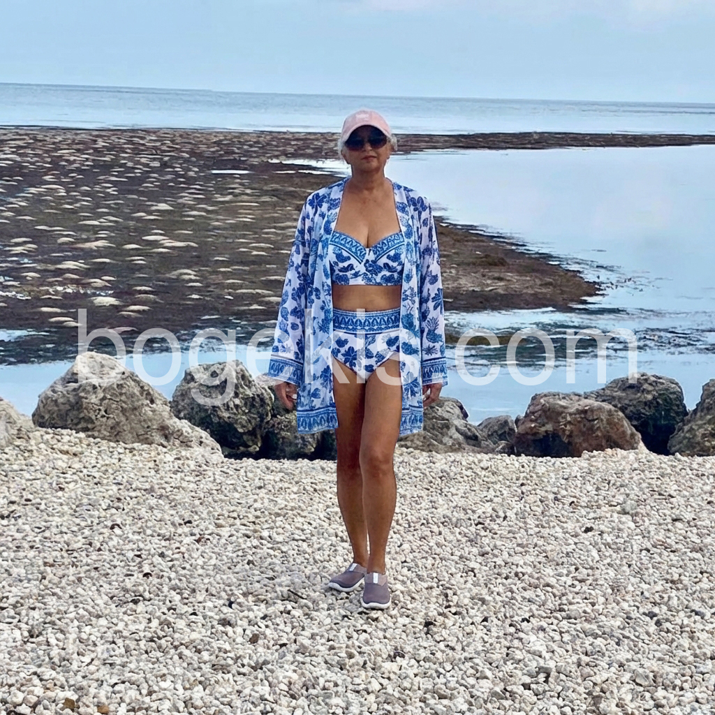 I was a little worried about fit, but this swimsuit surprised me. The sizing feels true, and the top stays in place comfortably when I walk. The pattern is eye-catching, and the color combination looks even better in real life. The cover-up also gives extra style, so I don’t need to bring another outer layer.