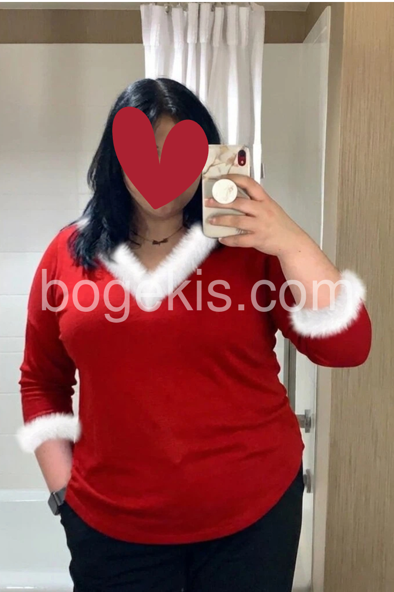 I absolutely love this top, the deep red color looks so rich and the white faux fur trim at the neckline makes it feel warm, cozy, and classy at the same time. It’s flattering on the body and the V-shape detail really elevates the whole look. I’ve already worn it with jeans and got compliments right away—this is definitely a piece I’ll reach for often.