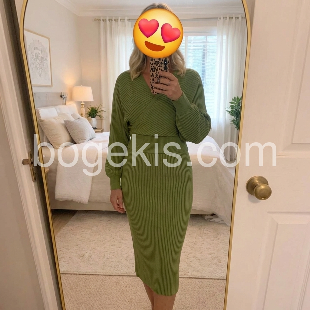 I love how polished this sweater dress looks while still being cozy. The long sleeves and snug knit give a warm, snug feel, and the color is so fresh and versatile. What impressed me most is how well it shapes the body without feeling tight—wearing it was effortless, and the overall look feels very premium.