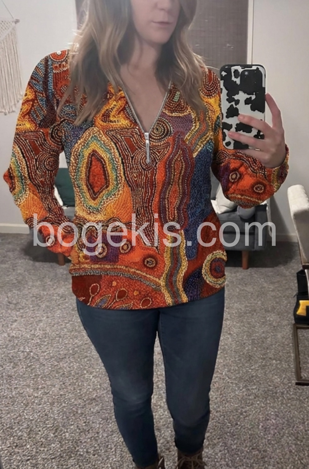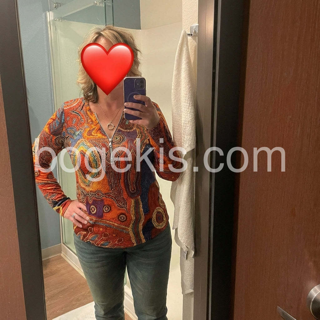 Autumn Aztec Geometric Zippered Long Sleeve Top
