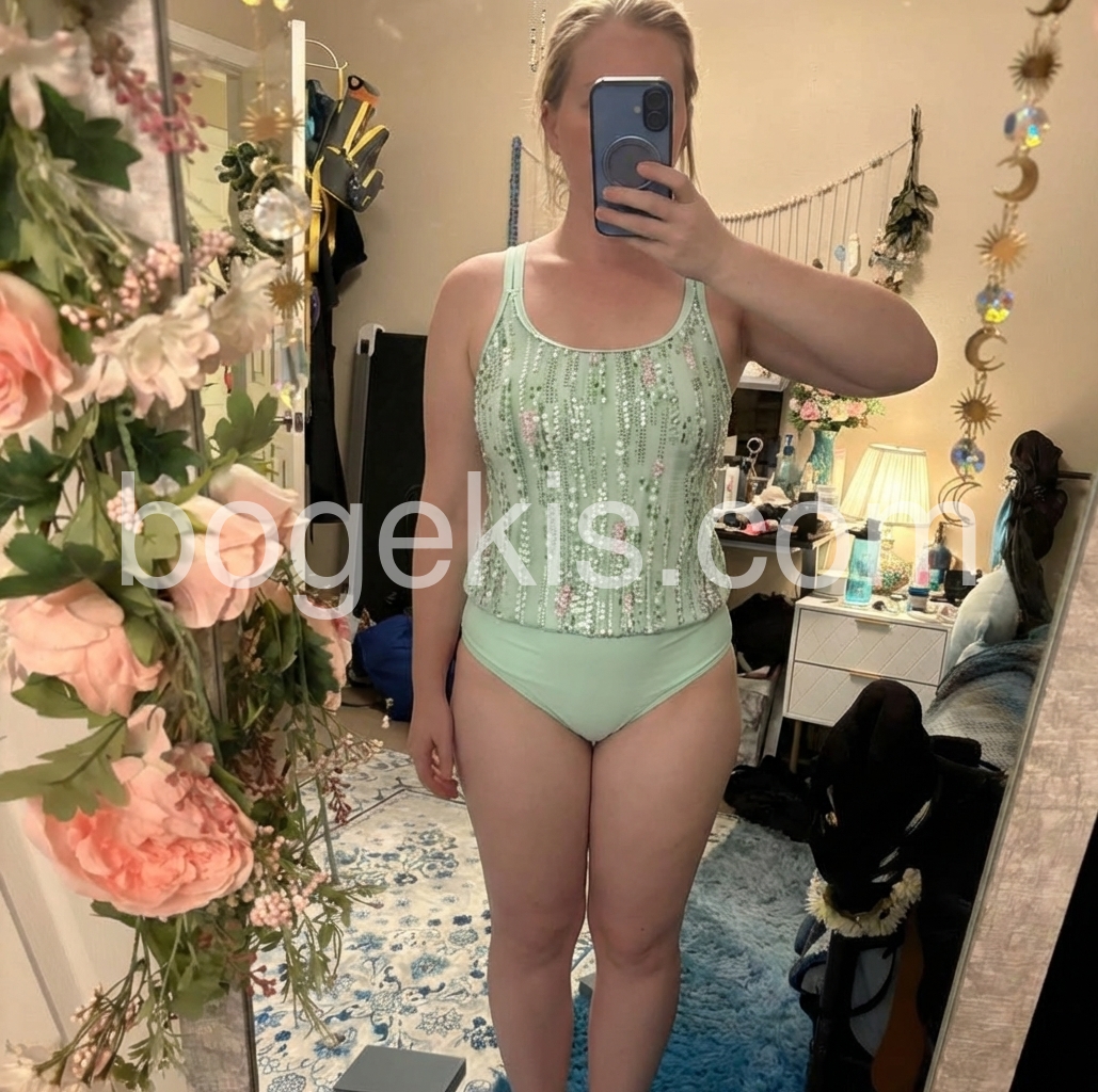 Make waves with our swimsuit tankini set, created with the lightest seafoam shade print. The sleeveless scoop double strap strappy caged neck top and full coverage bottoms offer support and chic style at the beach or pool. Set sail in fashion with this two-piece swimsuit, perfect for any pool party, vacation, and more.