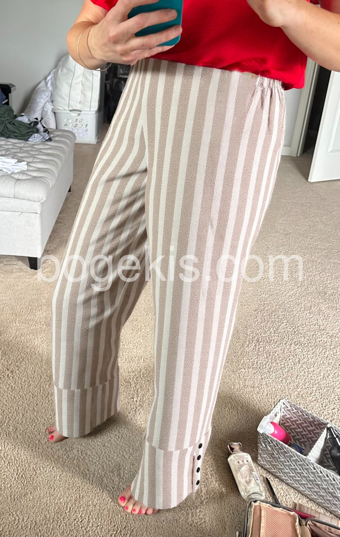 These pants are so comfortable and stylish! The striped pattern is classic and versatile, making them perfect for both casual and semi-formal occasions. The fit is excellent, and they look great with a variety of tops.