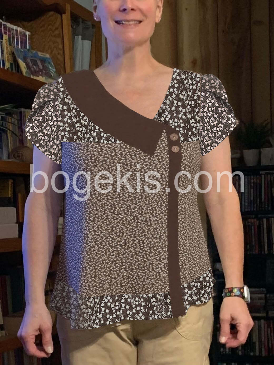 This shirt is so cute and comfortable. The brown floral pattern is really pretty in person, and the button details on the collar make it stand out from other tees I own. It washes well without shrinking too.