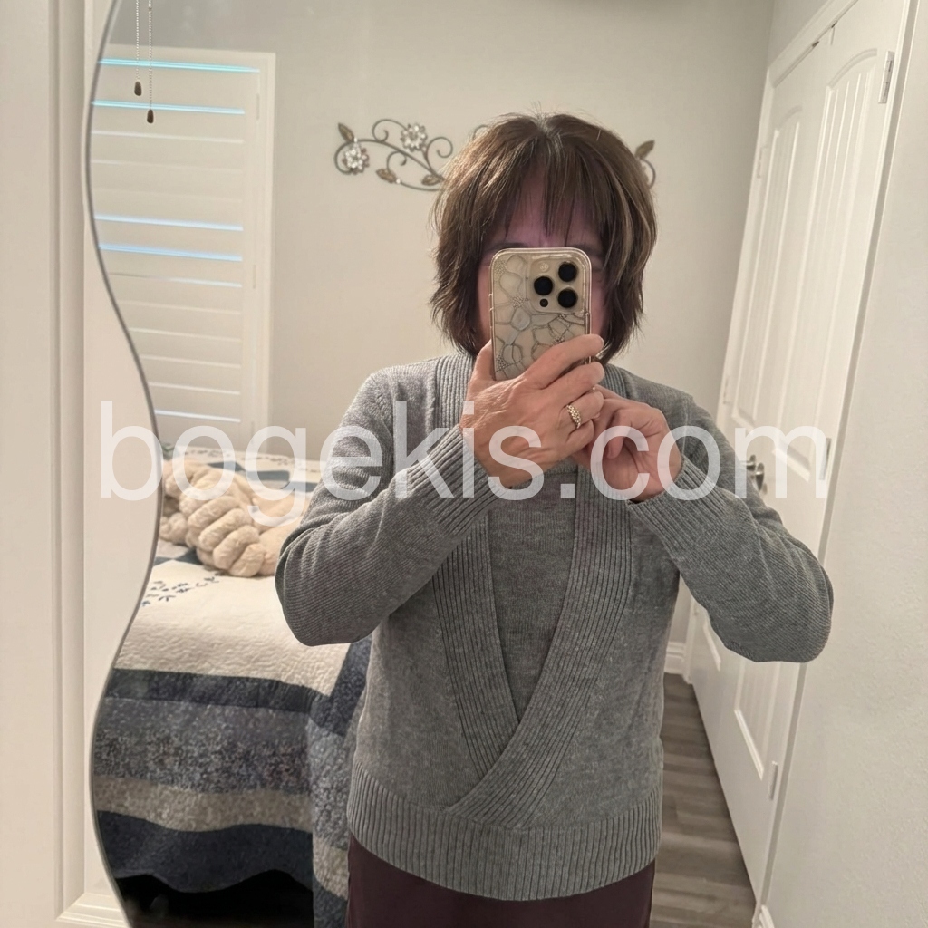 This dark gray sweater features a twofer style, perfect for those who love a mod layered look. Professional, casual, and yet still dressy, this versatile plunging v-neck sweater top and faux cami underneath provide the right amount of detail with long capped sleeves. Machine wash normal with light colors or hand wash. May be hung up to dry or lay flat. Light ironing if needed.