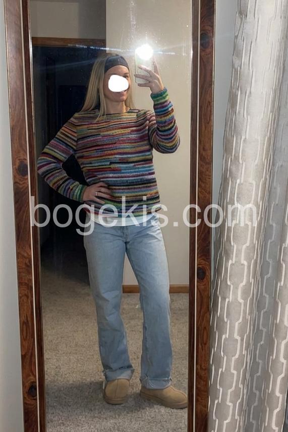This sweater is perfect for the winter season. The unique striped pattern and long sleeves provide extra warmth and insulation to keep you comfortable. The fabric is lightweight and breathable for added comfort.